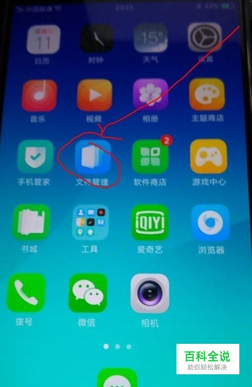 在oppo手机自带的android系统里面找到文件管理这个系统自动安装的工具软件。