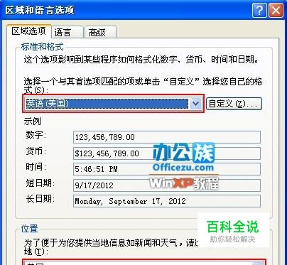 然后在点击“位置”下面的“小三角”也选为“中国”。