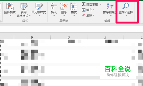 根据图中的指示,我们在软件的最上方可以的任务栏可以找到一个“放大镜”图标,将鼠标移至该图标,会显示“查找和选择”,点击该图标,会出现一些隐藏的选项。