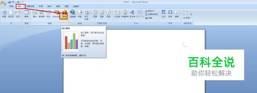 打开Word2007软件,新建一个空白文档,单击菜单栏“插入”——图表,如图所示。