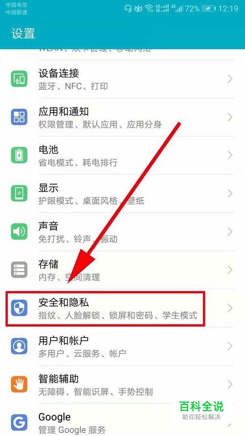 找到“安全和隐私”,打开它