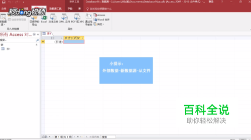 打开access,选择“外部数据-新数据源-从文件”,选择需要的文件类型。