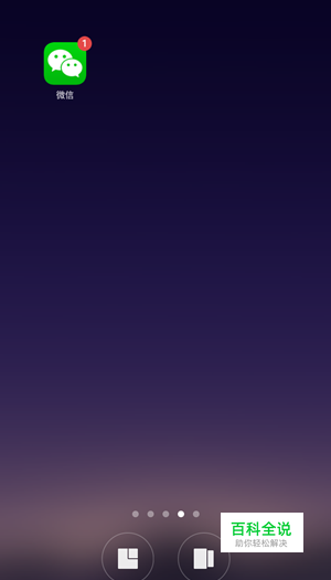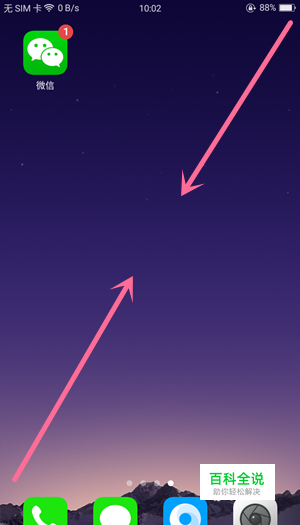 先打开手机进入桌面,找到有空白地方的页面,双指在屏幕对角的地方向内缩进。