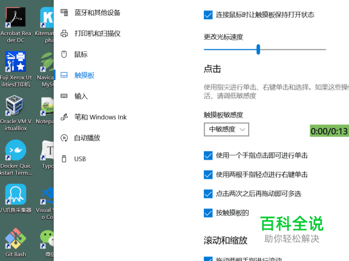 进入触摸板设置。 点击左侧“触摸板”选项卡,进入触摸板设置。