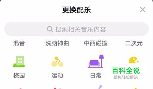 打开抖音的“更换配乐”后,您便打开了抖音的“音乐库”,首先在头部可以看到“热歌榜”、“流行”等分类,点击后面的更多后,即可打开全部音乐分类,在每一个分类下都有众多bgm可供选择