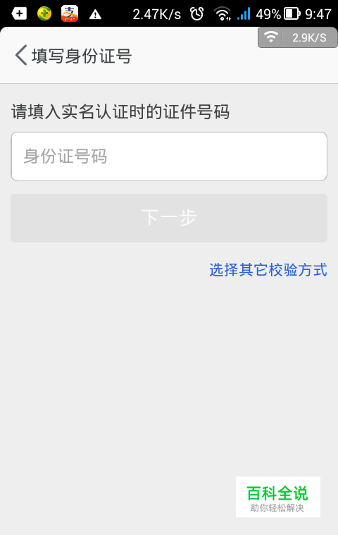 完成上一个步骤,还要输入身份证号码,输入正确的身份证号码后,就验证成功了