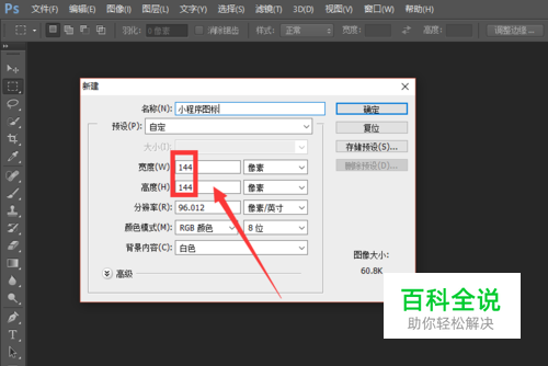 图标文件大小是有严格的显示的需要是 144*144的正方形,所以在处理的时候先新建一个这么大的文件。