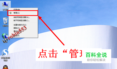 在桌面的计算机图标上点击鼠标右键,在下拉菜单中选择“管理”。