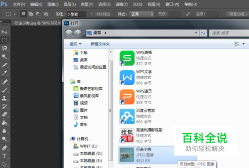 第一步,打开ps软件,执行命令左上角文件-打开-桌面-小狗图片。