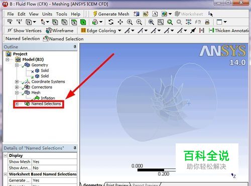 接上一篇《ICEM-CFD对叶轮流体域模型网格划分(2/3)》,在“Project”项目中,选择“Named Selection”,如图所示