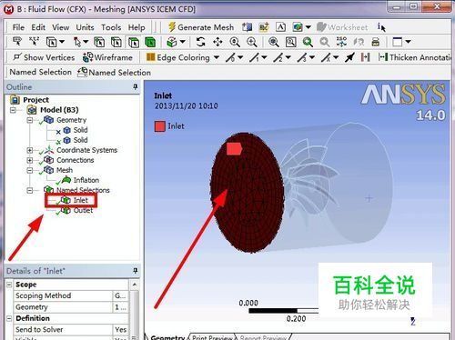 点击“Named Selection”前面的+号,展开“Named Selection”,选择“inlet”查看入口边界,如图所示