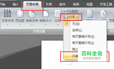 点击“页面布局“选项,单击”行号“按钮,选择”行编号选项“