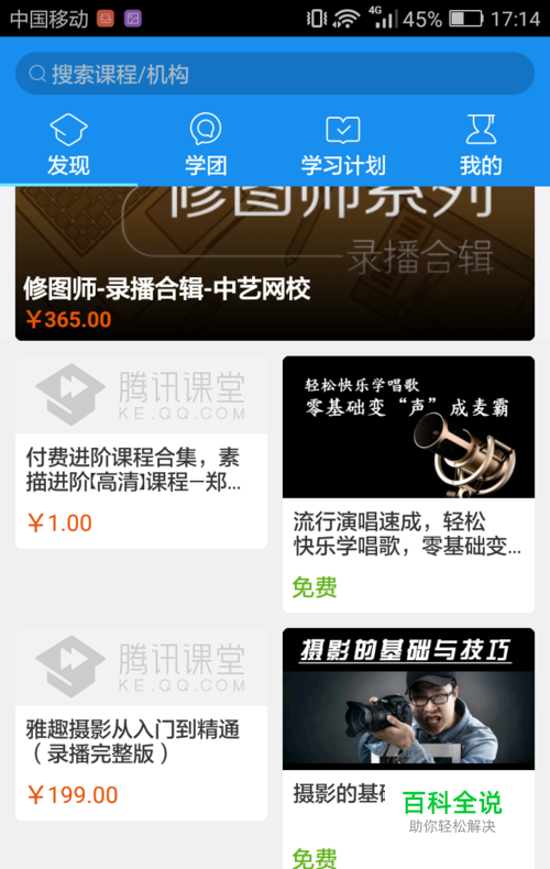 点击你想要学习的视频,不过有的视频是收费的,当然这些视频的质量也更好,你也可以先学习一些免费的视频。