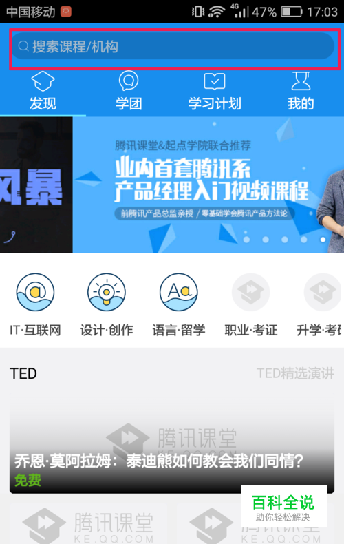 然后点击上方的搜索选项,在其中输入自己想要学习的东西,可以是其中的一些关键字就行了。