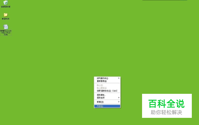 鼠标右键点击桌面空白处,点击最下面的‘内容’(有些操作系统显示是‘属性’);