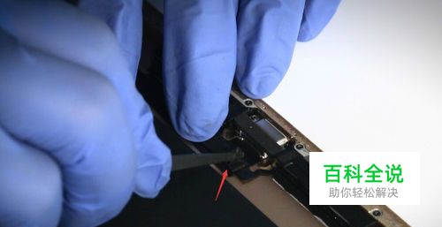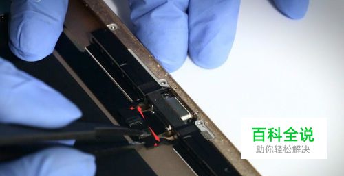 使用拆机撬棒的尖端,轻轻起开排线连接器(排线扣)。不要用力太大,把底座铲坏了。