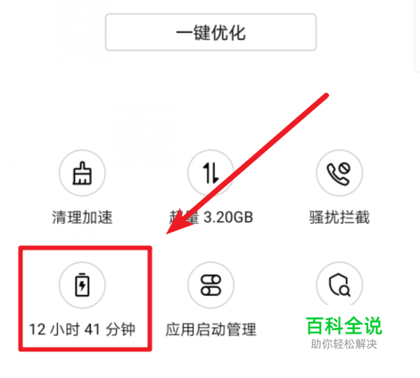 进入手机管家后,我们选择下方的电池的图标进入。
