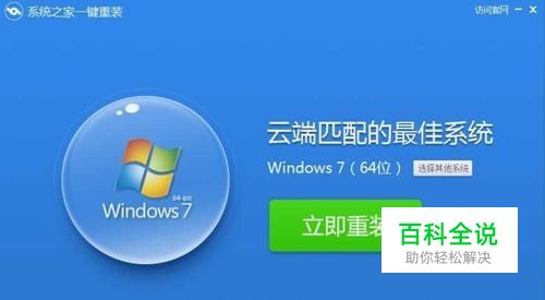 先进入系统之家一键按装大师官网下载最新版系统之家(一键重装工具),并进入软件主界面。选择windows7 64位系统图标,点击“立即重装”进入下一步。