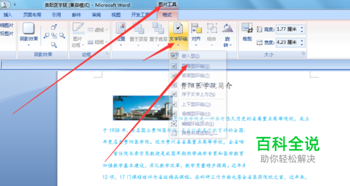 (3)在正文第一段开始处插入图片“考生文件夹\3301\教学楼.jpg”,并设置环绕方式为四周型环绕;