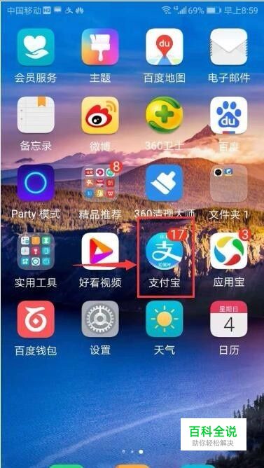 在华为手机上安装好支付宝,找到并点击它;