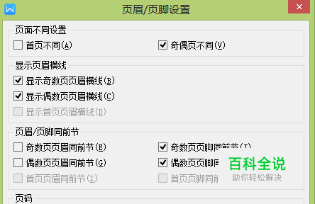 下面以勾选“奇偶页不同”为例,取消勾选“显示奇数页页眉横线”并单击确定。