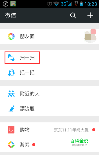 首先将二维码图片保存在手机上,然后打开微信软件,因为微信有扫描二维码功能。成功登陆微信之后,点击下方的【发现】菜单,可以看到【扫一扫】功能,如下图所示。