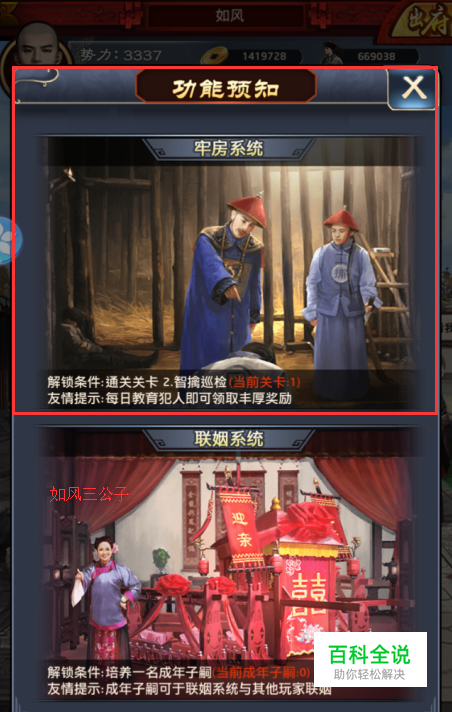 首先玩家要了解【牢房】的解锁条件,在游戏中需要玩家通关关卡2:智擒巡检这一关卡,这样才能解锁牢房功能。