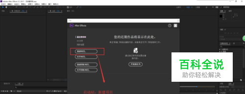用鼠标左键双击AE软件的快捷图标,启动AE后期特效软件,启动AE软件之后,会看到一个开始窗口,在开始窗口中选择单击新建项目,创建一个AE项目。