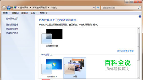 进入个性化设置窗口,点桌面背景。也可以直接点击主题。