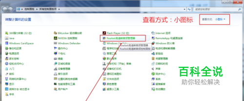 然后将查看方式改为小图标(窗口右上方); 再打开Realtek高清晰音频管理器。