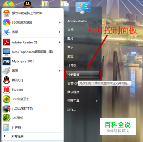 首先打开控制面板:开始 --> 控制面板