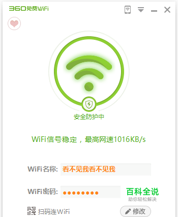 首先使用360WiFi创建wifi热点。(可以看到我创建的wifi名称是“看不见我看不见我”)