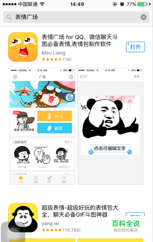 手机上先安装好表情广场,在app store中搜索下载即可。