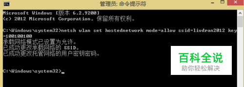 打开命令提示符(管理员权限的,WIN键+X),输入命令netsh wlan set hostednetwork mode=allow ssid=mywifi key=thisisWiFi。回车。SSID为WiFi热点的名称,key是密码,可两者以自行修改。 再次输入命令:netsh wlan start hostednetwork