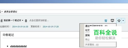 选中某一个印象笔记,点击右上方的的环形按钮(共享按钮)