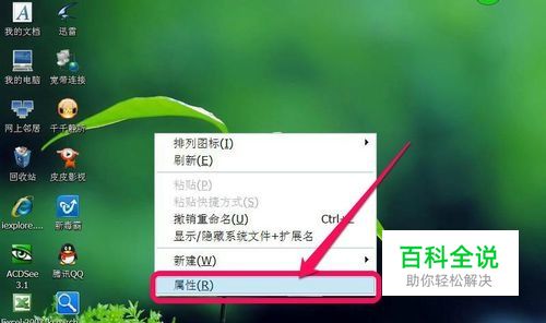 2,处理方法是,在桌面空白处右键点击,在弹出的右键菜单中选中“属性”。
