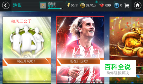 玩家想要升级格里兹曼的等级,首先点击【活动】→【绿茵巨星】。