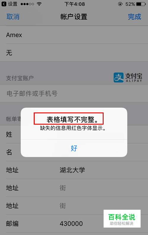 App Store绑定支付宝提示表格填写不完整解决办法