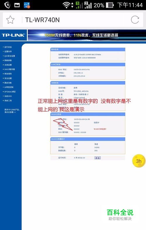 设置好了 为什么上不了网呢 我们先看下运行状态 wan状态有没有获取到IP 正常是要能获取到IP 才能正常上网的!我们 是示范机器 所以 给大家知道在那个位置