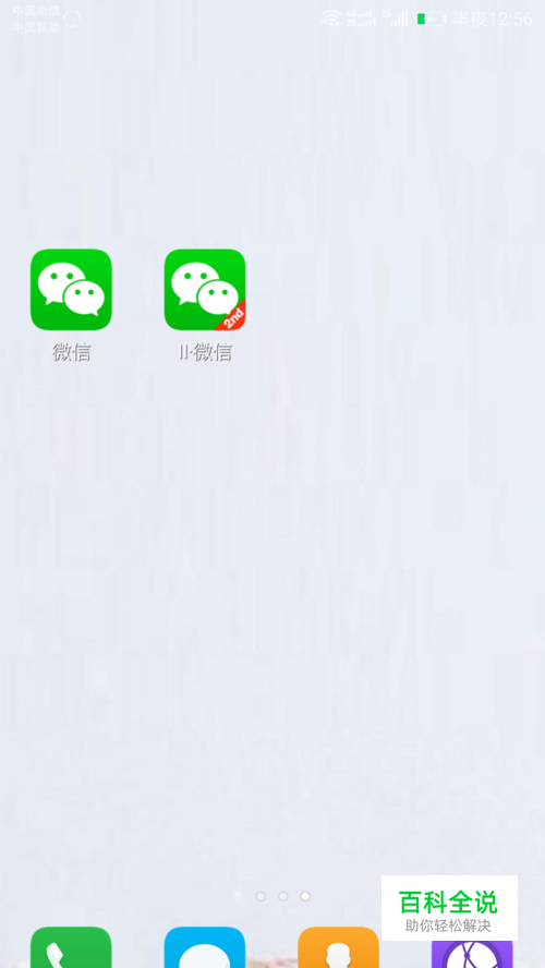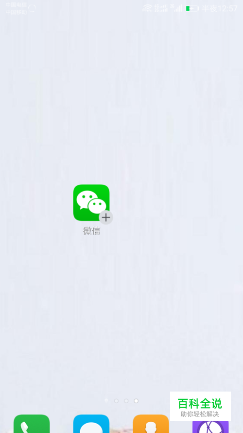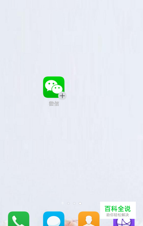 回到手机桌面后会发现没有出现两个微信图标,接下来长按微信,放开后微信图标右下角显示“+”号。