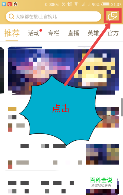 打开王者营地软件,然后登录自己的王者账号。在打开的软件界面,点击右上角的聊天信息图标。如图所示