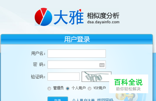打开大雅相似度分析的软件,到用户登录这里,在这里要是你没有注册过就登陆不了 所以需要先注册一下才可以