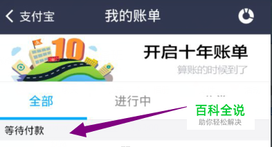前面怎么下单就先不说了,比如你下了一单没有付款,你到支付宝钱包中的账单那里去看看。如下图所示: