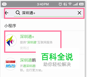 在搜索栏搜索【深圳通+】小程序,并点击打开。