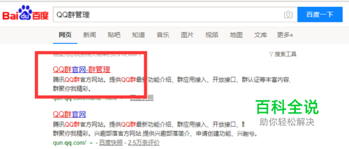 打开浏览器,输入QQ群管理并搜索,选择出现的第一条信息