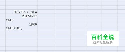 那么如何既需要日期,又需要时间 首先先输入Ctrl+; 这个时候日期是出来的 再这个基础上输入空格 然后再输入Ctrl+Shift+; 这个操作其实就是把以上两步合在了一起 但如图显示还是少了时间,这个时候只需要设置一下单元格格式就可以了