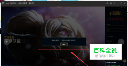 LOL登入时遇到了一个预期之外的错误 解决方案 LOL英雄联盟登入时遇到了一个预期之外的错误 解决方案 英雄联盟登录时遇到了一个预期之外的错误 解决方案。许多小伙伴都喜欢玩LOL,但有时在登录时会遇到出现‘’LOL登录时遇到一个预期之外的错误‘’的情况,导致我们无法登录游戏,那么怎么解决呢?下面小编就给大家介绍下。