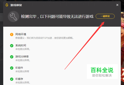 待自动扫描完成,点击“一键修复”,待修复完成后退出,如图所示;