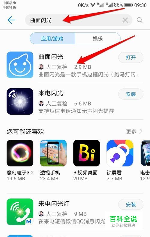 首先需要下载一个APP——曲面闪光,打开手机应用市场,搜索【曲面闪光】并下载安装