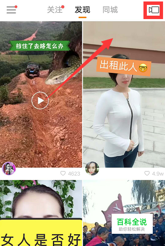 打开快手APP,点击右上角录制按钮。